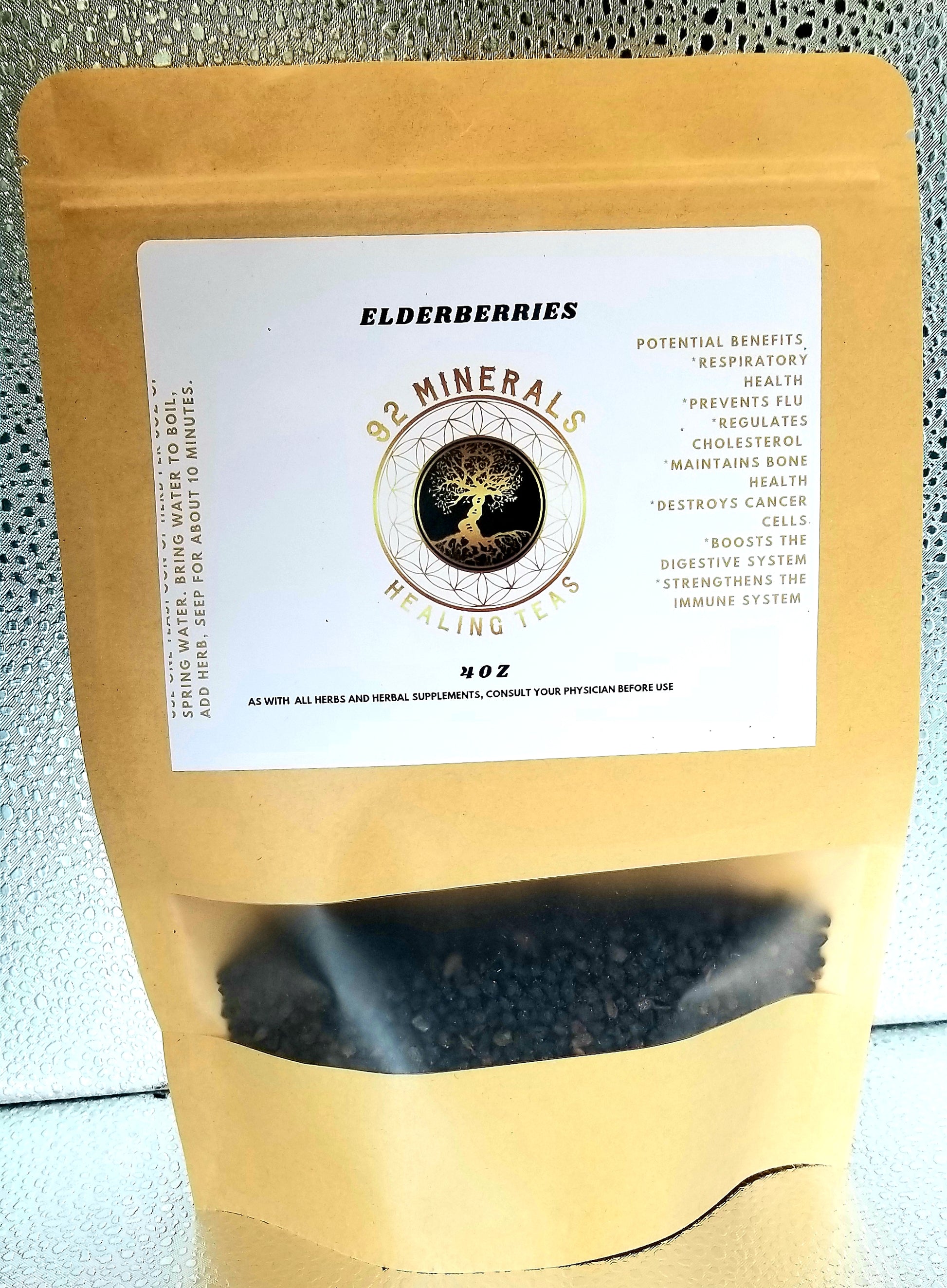 One 4oz bag of Organic Elderberries to fight colds, flus, and strengthen immunity.