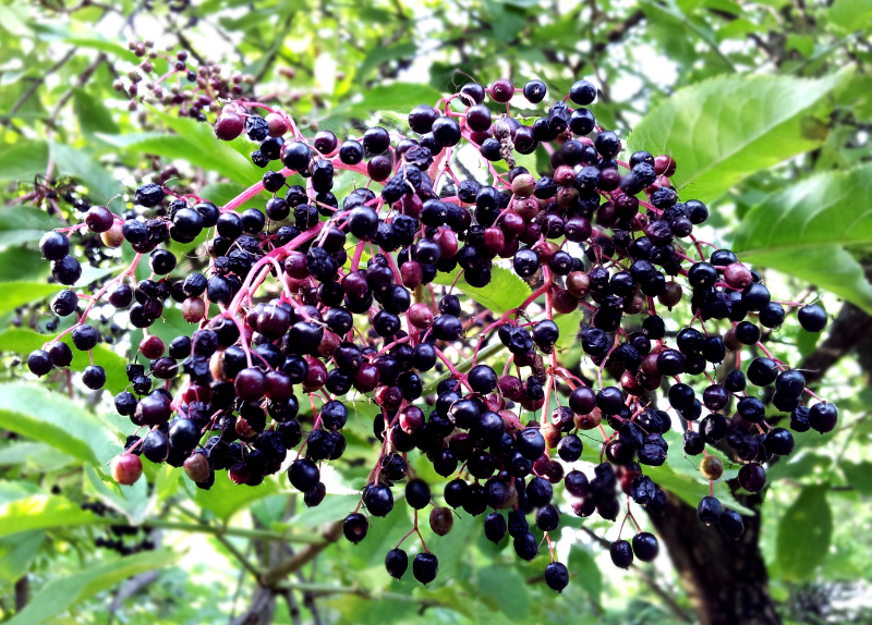 Elderberry herb is a versatile remedy for coughs, flu, and colds. It is known for its exceptional taste and beautiful teal color. Elderberry is used to treat multiple conditions such as influenza, H1N1 "swine" flu, HIV/AIDS, and to boost the immune system. It can also be used for treating sinus pain, sciatica, neuralgia, chronic fatigue syndrome, hay fever (allergic rhinitis), and cancer. In addition, it is used as a laxative for constipation, to increase urine flow, and to promote sweating.